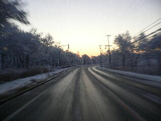 マリーナー到着前の高速道と一般道の朝の樹氷並木、結構寒いんですねえ・・・路面は塩カリの山で酷いもんです、解けてグチャグチャ。
